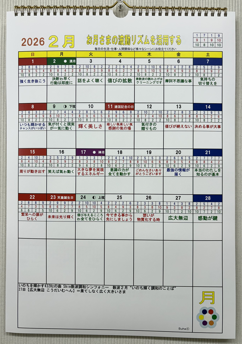 ☆スーハメッセージカレンダーをもとに作曲された1月〜12月の曲「数波 調和シンフォニー」はこちら。