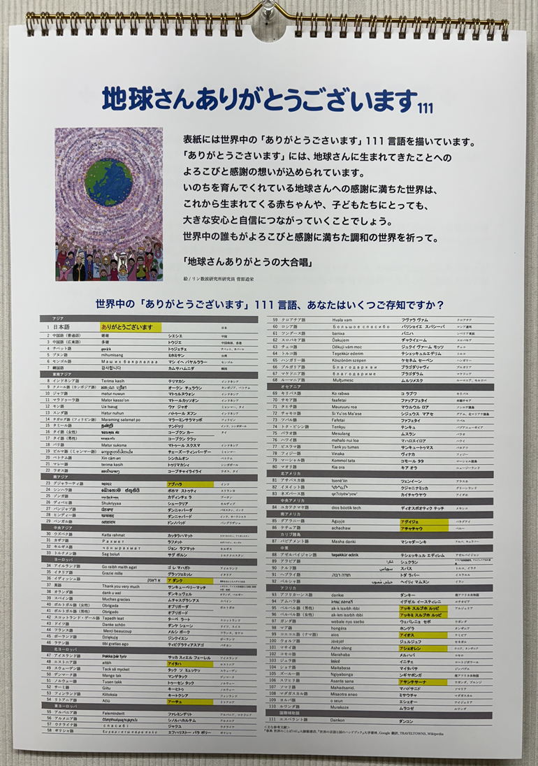 表紙には世界中の「ありがとうございます」111言語を描いています。